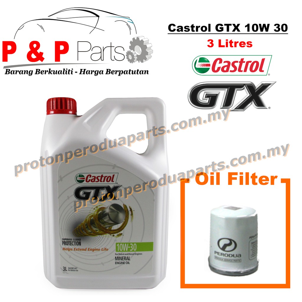 Castrol Gtx 10w 30 Engine Oil 3 Litres Minyak Enjin 10 30 Oil Filter For Perodua Cars Minyak Hitam Shopee Malaysia